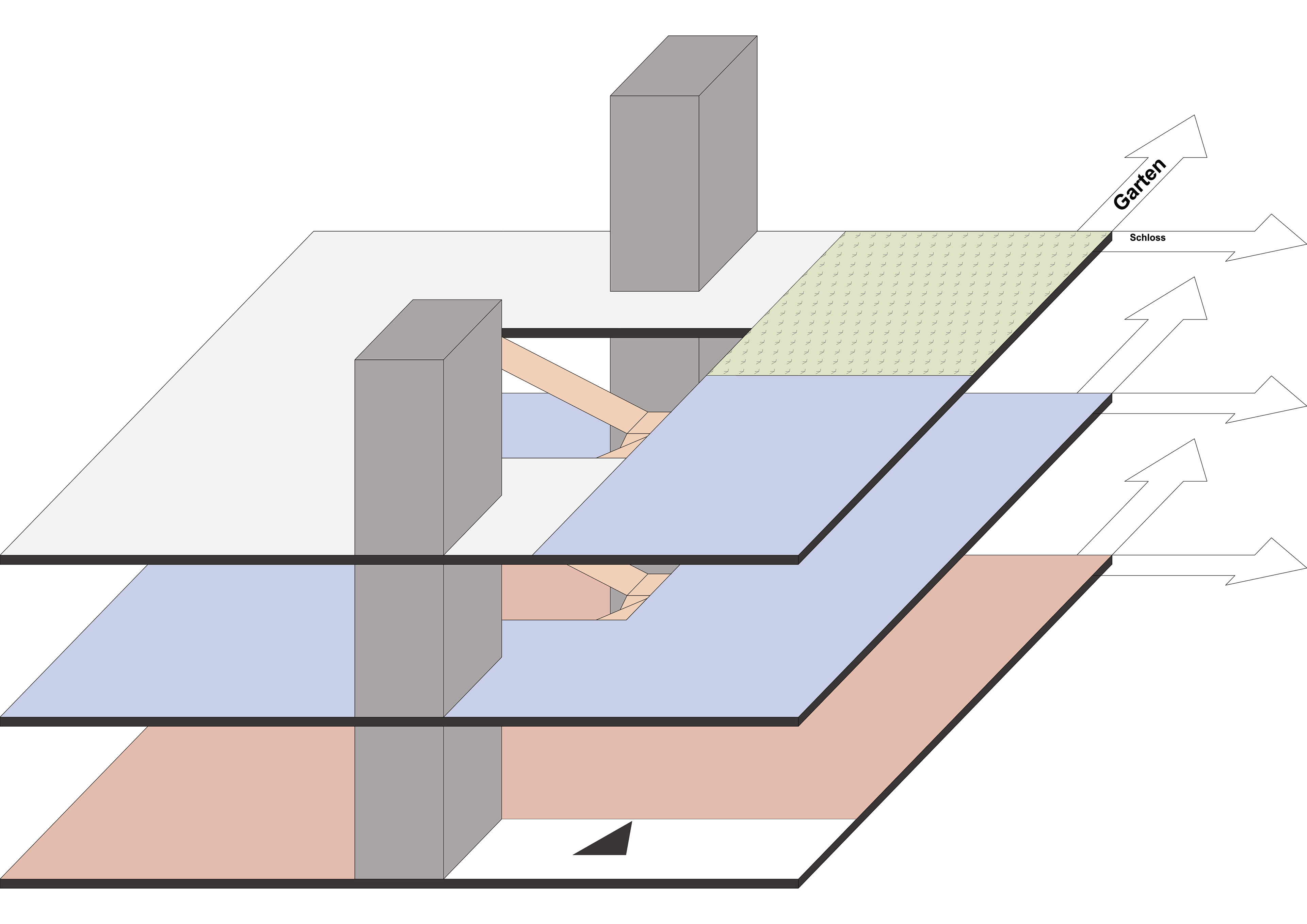 nicht öffentliche, und auf der rechten die der Öffentlichkeit zugänglichen Räume