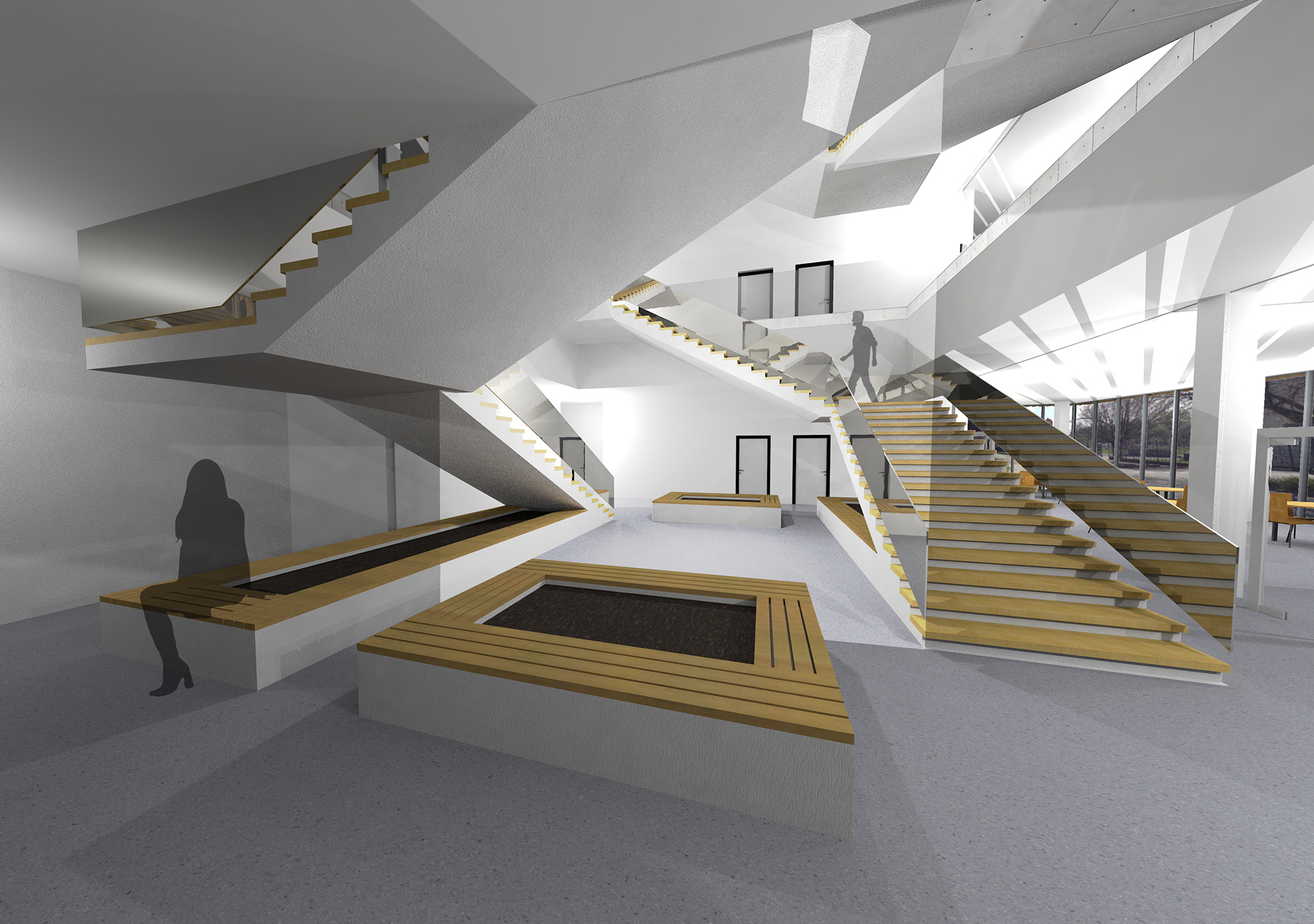 befinden. Das 1. Obergeschoss ist fast gänzlich für den Besucherbereich geplant.